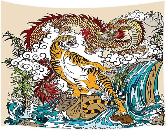 Jawo Asian Tapestry Chinese Dragon And Tiger In The Landscape With Waterfall Wall Tapestry Wall Art Hanging For Bedroom Living Room Dorm 71x60inches Amazon Co Uk Home Kitchen